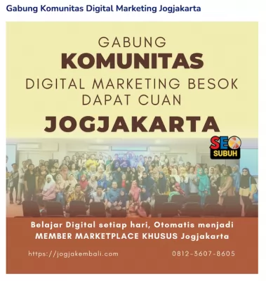 Dengan bergabung, Anda tidak hanya belajar, tetapi juga membangun jejaring yang kuat untuk mendukung bisnis Anda berkembang lebih cepat. Anda akan menjadi bagian dari komunitas yang selalu mendukung kemajuan anggotanya, baik dalam dunia digital marketing maupun bisnis secara keseluruhan.