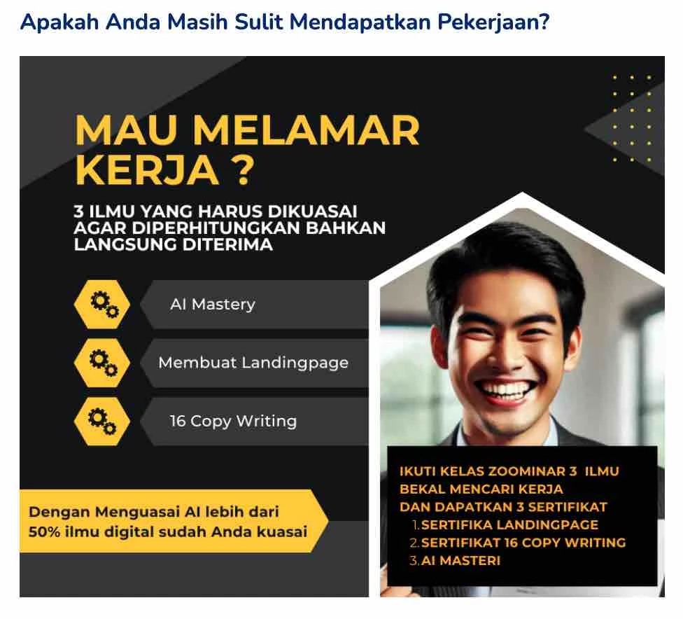 Tahukah Anda? Perusahaan kini berburu individu yang tidak hanya mampu bekerja, tetapi juga memiliki keterampilan digital mumpuni. Keahlian seperti Landing Page Design, Copywriting, dan AI Mastery menjadi tiket emas untuk bersaing di dunia kerja modern.