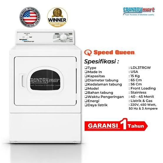 Heavy Duty Power Mesin Pengering Speed Queen Komersial Untuk Laundry Industri Jogja